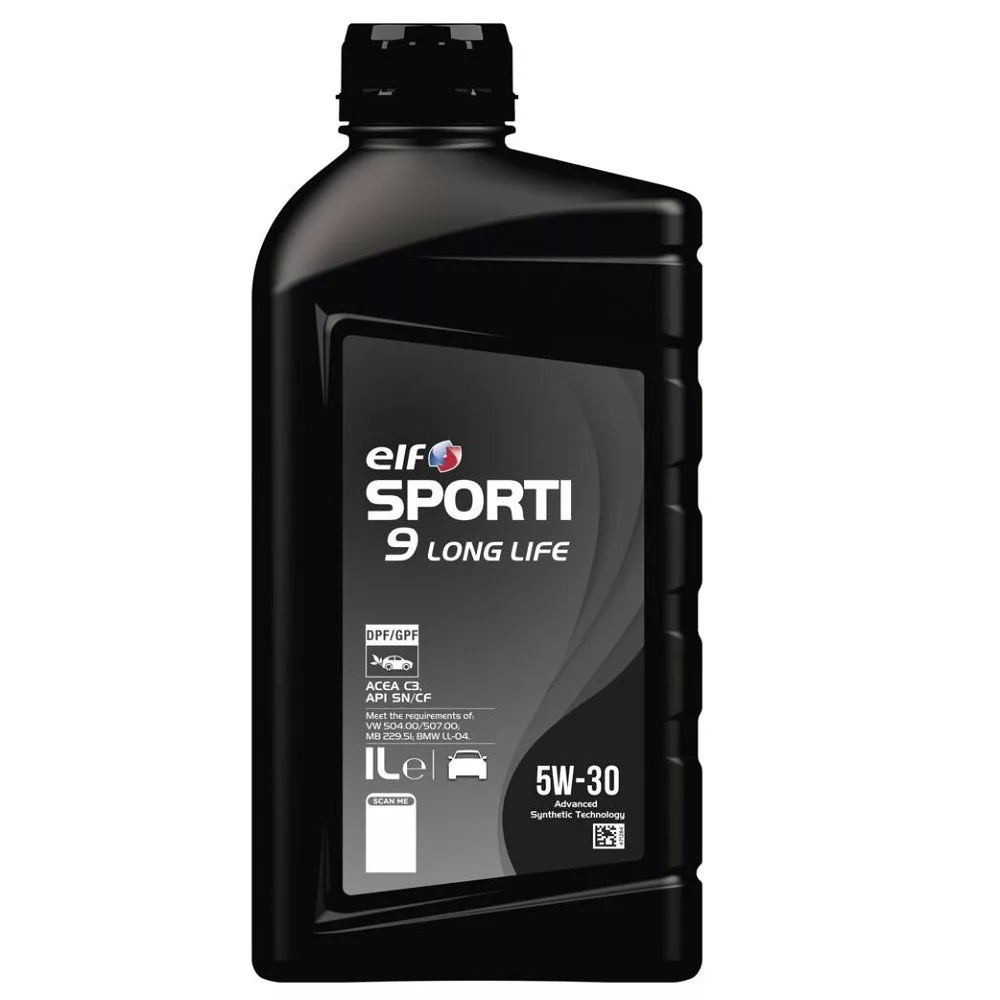Az ELF SPORTI 9 LONG LIFE 5W-30 egy szintetikus technológiájú motorolaj, amelyet korszerű benzines és dízelmotorokhoz fejlesztettek, különösen azokhoz, amelyek megfelelnek az EURO V kibocsátási normáknak. Kifejezetten a Volkswagen-csoport (VW, Audi, SEAT, Skoda) igényei szerint készült, és teljes kompatibilitást biztosít az utókezelő rendszerekkel, például részecskeszűrőkkel.