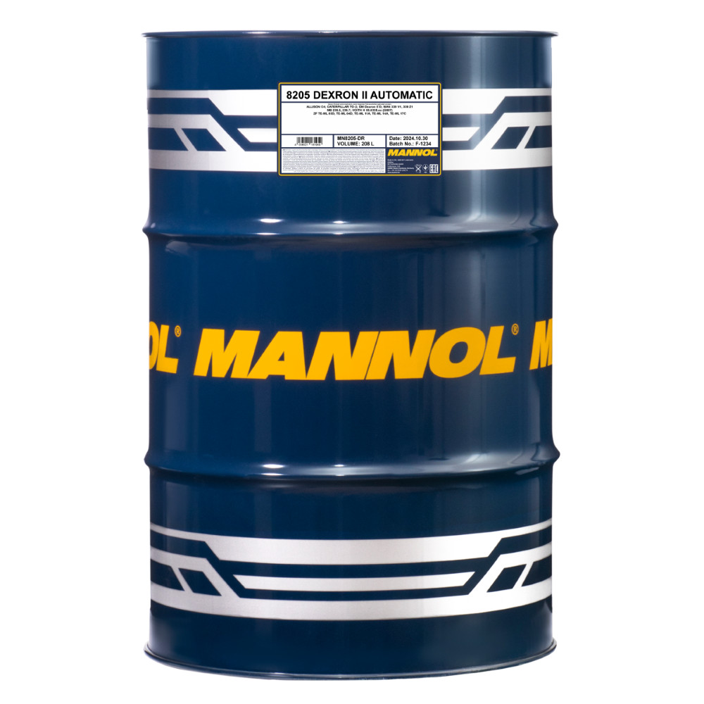 A MANNOL Automatic ATF Dexron II (8205) egy egész évben alkalmazható, ásványi alapú automataváltó-olaj (ATF), amelyet személygépkocsik és haszongépjárművek automata sebességváltóihoz, hidraulikus szervokormány-rendszereihez, fülkebillentő mechanizmusaihoz, hidraulikus tengelykapcsolóihoz és egyéb hidraulikus berendezéseihez fejlesztettek, beleértve a nagy igénybevételnek kitett off-road és tehergépjárműves alkalmazásokat is.