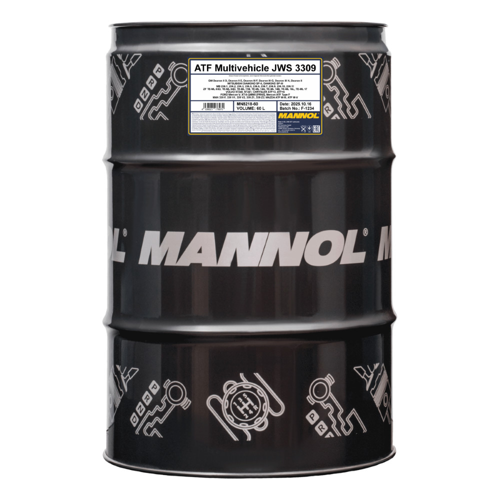 A MANNOL ATF Multivehicle JWS 3309 (8218) egy egész évben alkalmazható, teljesen szintetikus automataváltó-olaj (ATF), amelyet modern és korábbi generációs automata sebességváltókhoz fejlesztettek, beleértve a hidrodinamikus nyomatékváltóval szerelt rendszereket, manuális és szekvenciális üzemmóddal rendelkező váltókat, valamint elektronikus vezérlésű automata egységeket is. A termék kompatibilis olyan hidraulikus rendszerekkel is, ahol Dexron (Dexron VI kivételével) vagy Mercon specifikációjú folyadék használata az előírás.