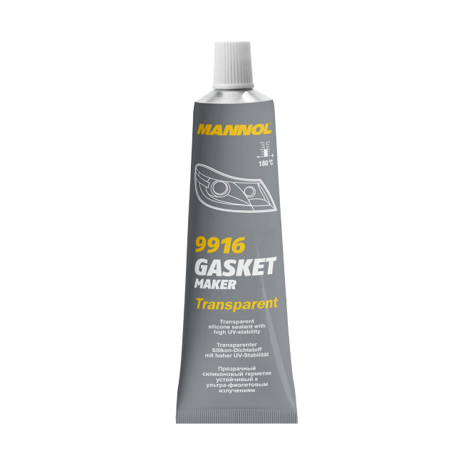 A MANNOL Gasket Maker Transparent 9916 egy magas minőségű, egykomponensű tömítőanyag, amely szobahőmérsékleten keményedik ki, és kifejezetten jó ragasztó- és kötőképességgel rendelkezik. Átlátszó kivitele miatt különösen előnyös olyan alkalmazásoknál, ahol nemcsak a tömítés tartóssága, hanem az esztétikus megjelenés is fontos szempont. A termék alkalmas járművek üvegezéséhez és világítóegységeihez kapcsolódó munkákhoz, így használható szélvédők, fényszórók, irányjelzők és féklámpák ragasztására és tömítésére is.