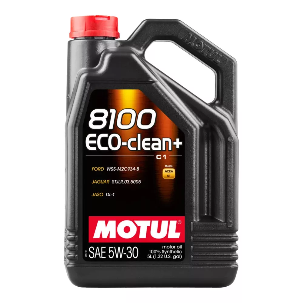 A MOTUL 8100 ECO-CLEAN+ 5W-30 egy szintetikus technológiájú, nagy teljesítményű, alacsony súrlódású, alacsony HTHS viszkozitású, csökkentett hamutartalmú motorolaj, amelyet olyan modern személyautó motorokhoz terveztek, ahol a gyártó SAE 5W-30 viszkozitási osztályú, ACEA C1 teljesítményszintű, üzemanyag takarékos kenőanyagot ír elő. Kifejezetten olyan benzines és dízel motorokhoz ajánlott, amelyek katalizátorral és dízel részecskeszűrővel (DPF) szereltek, és teljesítik az Euro 4, Euro 5 és Euro 6 emissziós előírásokat. A csökkentett szulfáthamu, foszfor és kéntartalom védi az érzékeny kipufogógáz utókezelő rendszereket, meghosszabbítja a DPF regenerálási ciklusok közötti időt, csökkenti az olaj elöregedését és támogatja a kedvezőbb üzemanyag-fogyasztást.