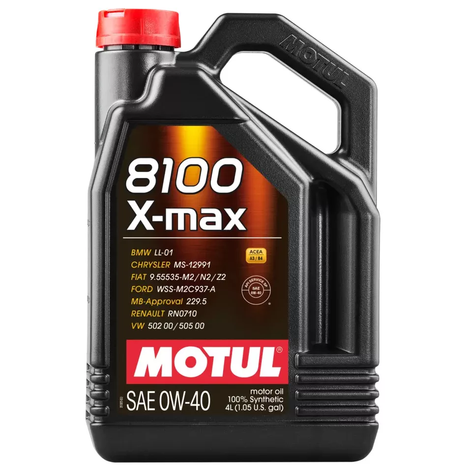 A MOTUL 8100 X-max 0W-40 olyan nagy teljesítményű, modern személyautó-motorokhoz készült, ahol a gyártó SAE 0W-40, ACEA A3/B4, normál hamutartalmú (Full SAPS) motorolajat ír elő. Benzin- és dízelmotorokhoz egyaránt használható, közvetlen vagy közvetett befecskendezéssel, turbófeltöltővel vagy anélkül, és kompatibilis katalizátorral szerelt rendszerekkel. Kifejezetten ajánlott nagy lökettérfogatú, erős, akár sportos használatú motorokhoz, ahol fontos a stabil olajfilm, a magas hőmérséklet-állóság és a hosszabb olajcsere-periódus melletti megbízhatóság.