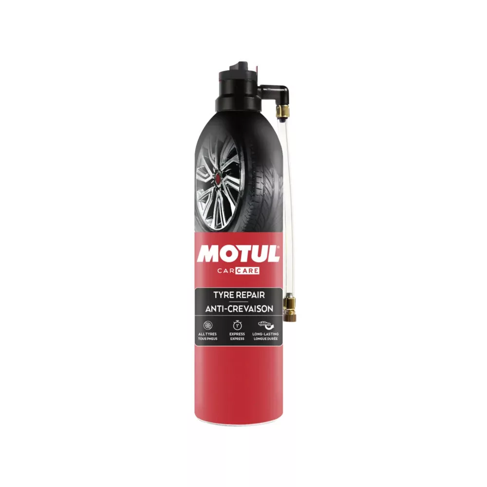 A MOTUL Tyre Repair egy professzionális vészhelyzeti megoldás, amelyet arra fejlesztettek ki, hogy defekt esetén gyorsan, egyszerűen és szerszámok nélkül tegye újra menetkészsé az autót. Ez a nagy teljesítményű aeroszol azonnal eltömíti az abroncs sérülését és ezzel egy időben újra felfújja azt. Sokoldalúságának köszönhetően egyaránt alkalmazható belsővel szerelt és belső nélküli (tubeless) gumiabroncsokhoz is.