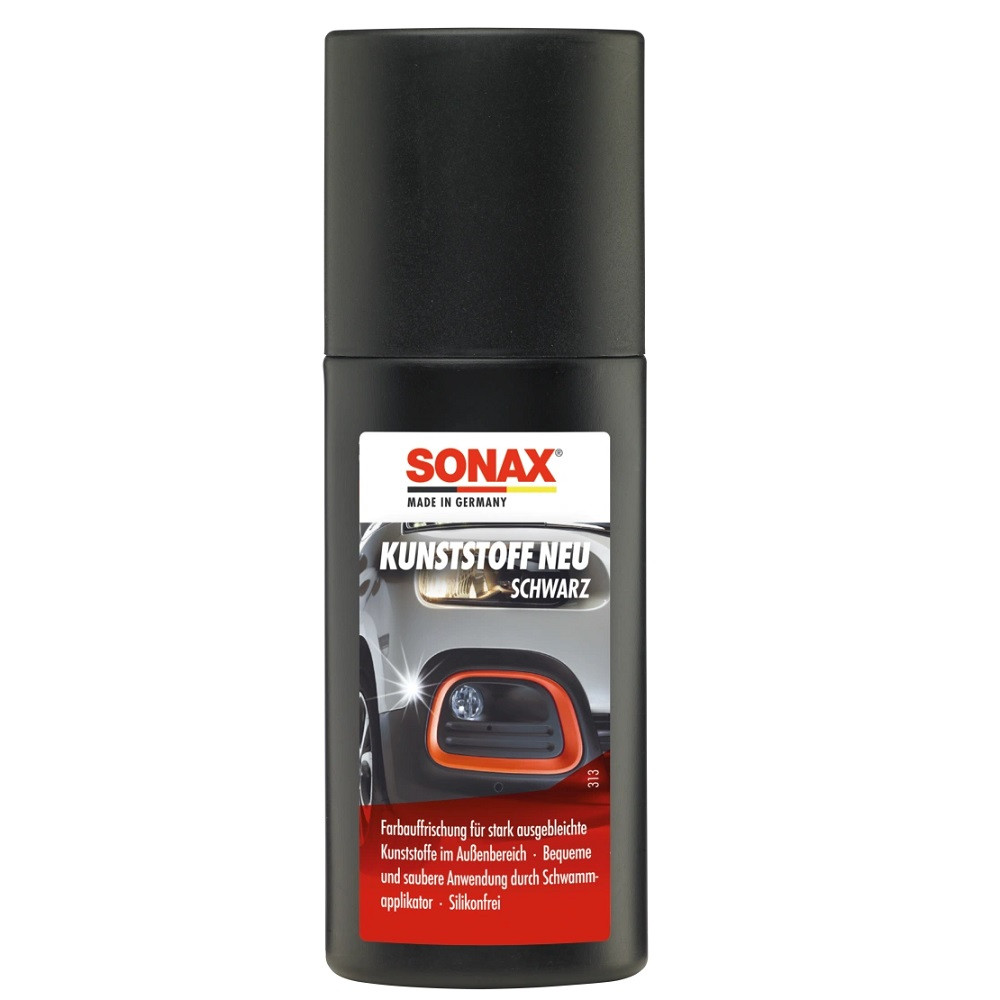 A Sonax 100 ml-es fekete műanyagápoló vízbázisú, környezetbarát restauráló szer, amely hatékonyan ápolja és felfrissíti az autó külső műanyag felületeit – például a lökhárítókat, díszléceket és légterelőket. Megőrzi és visszaadja az eredeti színt, véd az UV-sugárzás okozta fakulás ellen, miközben fenntartja a felületek természetes fényét. A praktikus szivacsos applikátornak köszönhetően egyszerű és tiszta a felvitel, nem szükséges külön eszköz hozzá. A termék tartós hatású, hosszú távon védi a frissített műanyagokat.
