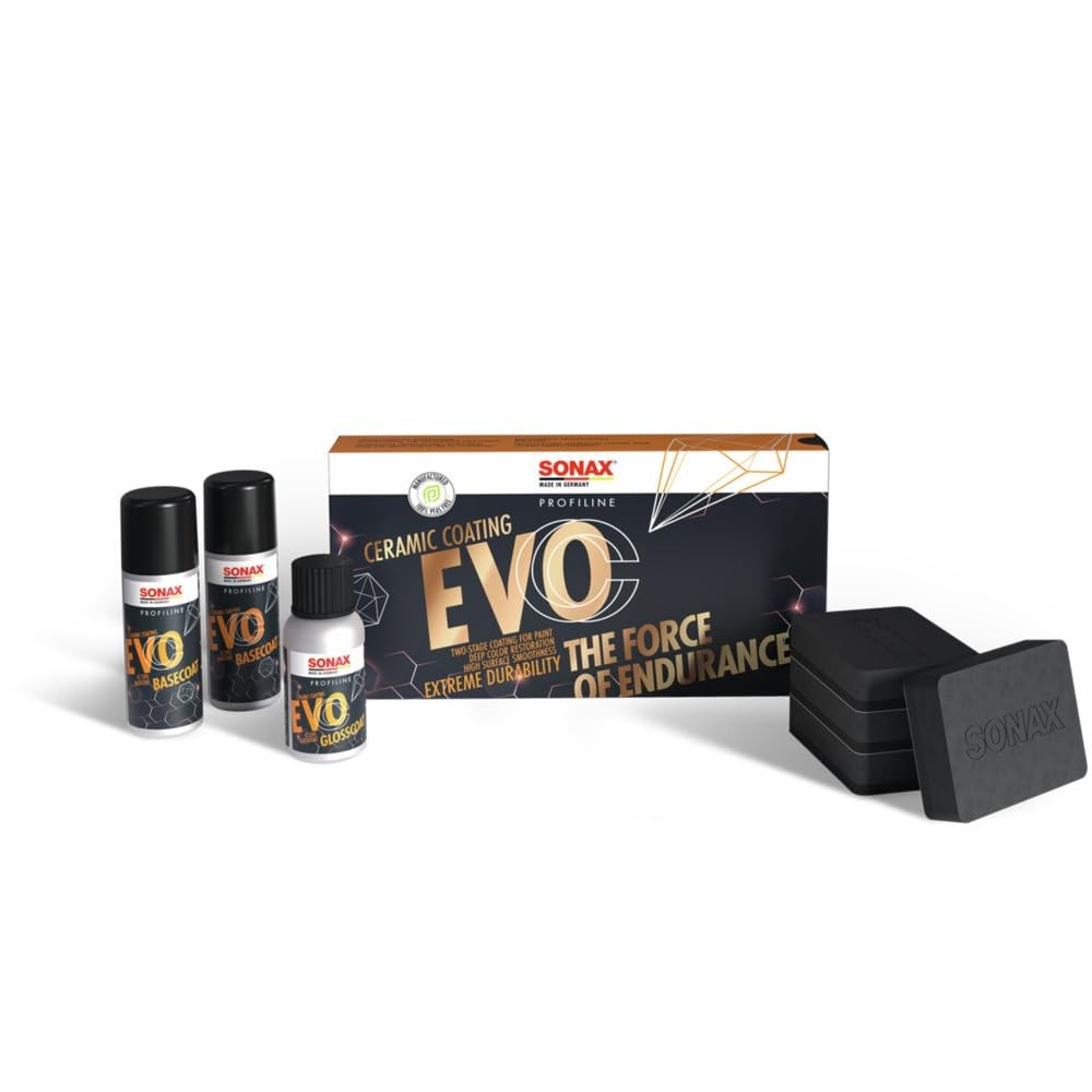 A SONAX PROFILINE CeramicCoating CC Evo (Art. Nr. 02378410) a SONAX professzionális védelmi termékcsaládjának csúcsterméke, amely a legújabb Si-Carbon technológiát alkalmazva egyedülálló kombinációját nyújtja a tartósságnak, a fényességnek és a vegyi ellenálló képességnek. Ez a kétkomponensű kerámia bevonat – a BaseCoat Evo és a GlossCoat Evo – tökéletesen összehangolt rétegekből áll, amelyek akár 5 évig is védik a fényezést az UV-sugárzással, a savas esővel, az útsóval, a madárürülékkel és más környezeti hatásokkal szemben.