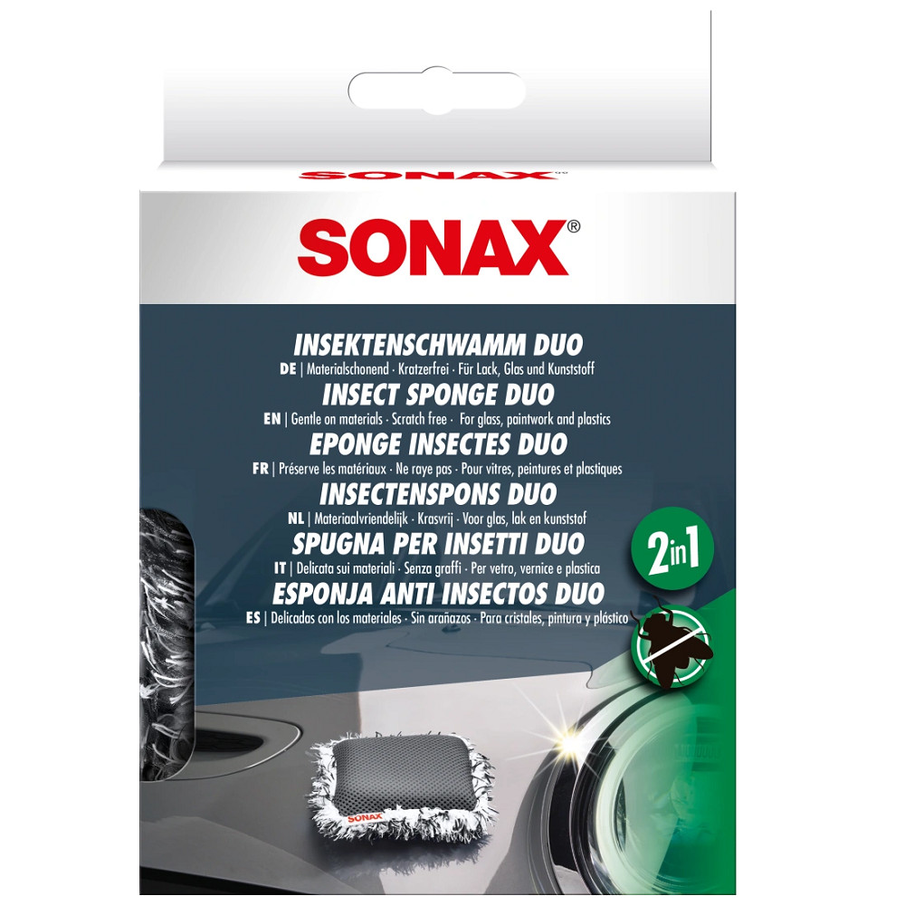 A Sonax Rovarszivacs DUO ideális megoldás a makacs szennyeződések eltávolítására, legyen szó rovarmaradványokról, madárürülékről vagy száradt koszról. Kétoldalas kialakításának köszönhetően alkalmas üveg, műanyag és érzékeny fényezés tisztítására is. A mikroszálas oldal finoman kezeli az érzékeny lakkozott felületeket, míg a hálós struktúra hatékonyan távolítja el a szennyeződéseket az üveg- és műanyag elemekről. A termék mosógépben mosható, így hosszú távon is higiénikus marad.