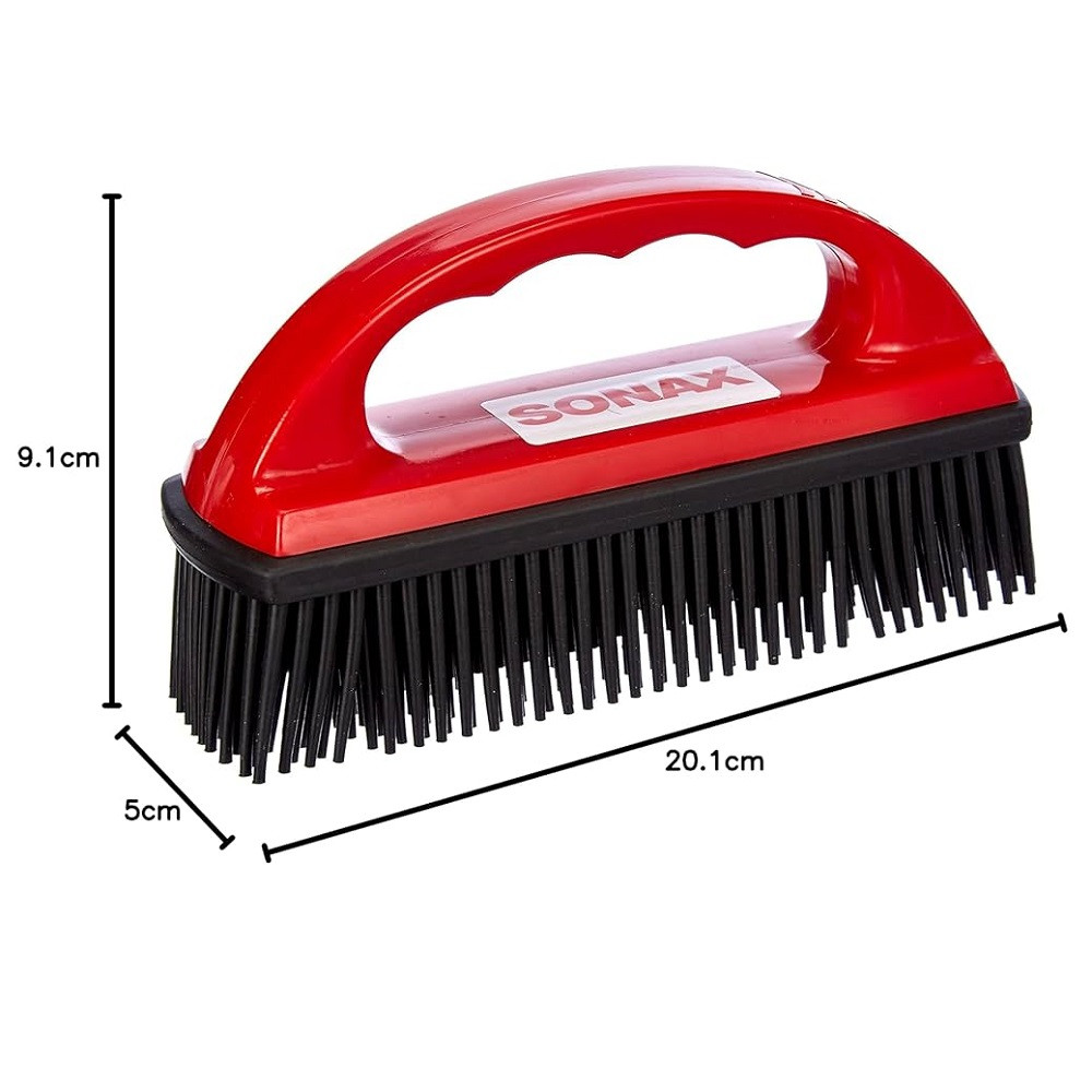 A SONAX 04978000 Pet Hair Remover egy ergonomikus formatervezésű tisztítóeszköz, mely különösen hatékonyan távolítja el a makacs állatszőröket kárpitokból, ülésekről és szőnyegekről. A rugalmas gumioldal kétféle fogazású vállal rendelkezik, így képes különböző szálvastagságokat és felületeket kezelni – legyen szó hosszabb kutyaszőrről vagy rövidebb macskaszőrről. Kiválóan alkalmazható nehezen hozzáférhető sarkok és rései esetén is, köszönhetően formatervezett kialakításának. Az ultrakönnyű kivitel megkönnyíti a felhasználást, még fej feletti munkavégzés esetén is kényelmes használatot biztosít.